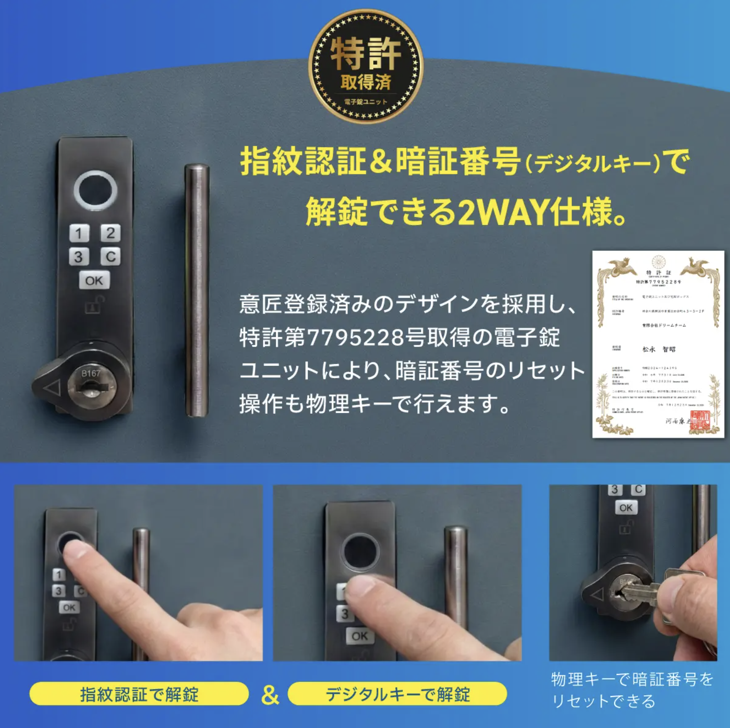 (なお、暗証番号での開錠もできる2WAY仕様です)