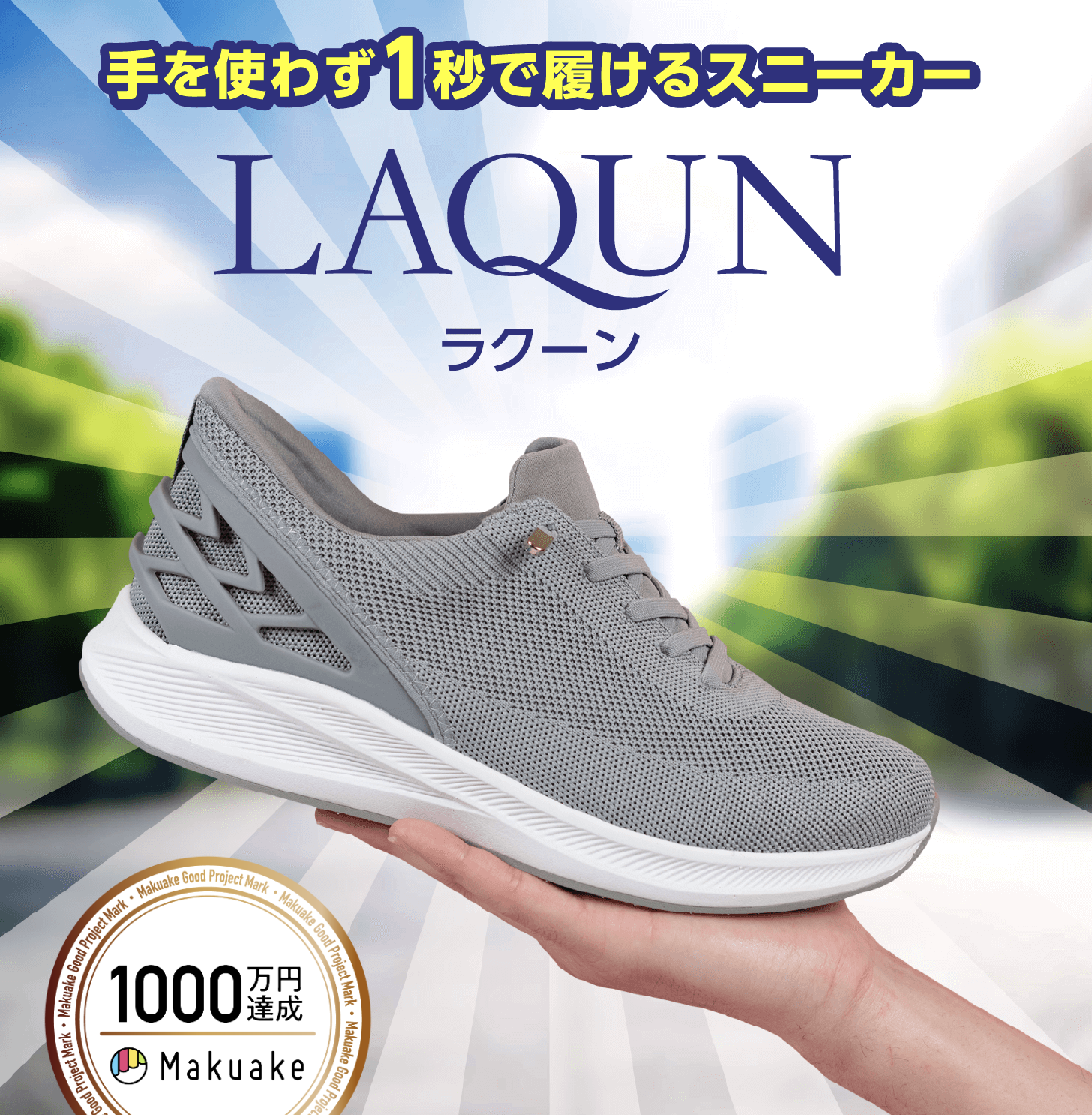 LAQUN(ラクーン)は、手を使わずに1秒で履けるハンズフリースニーカーです。