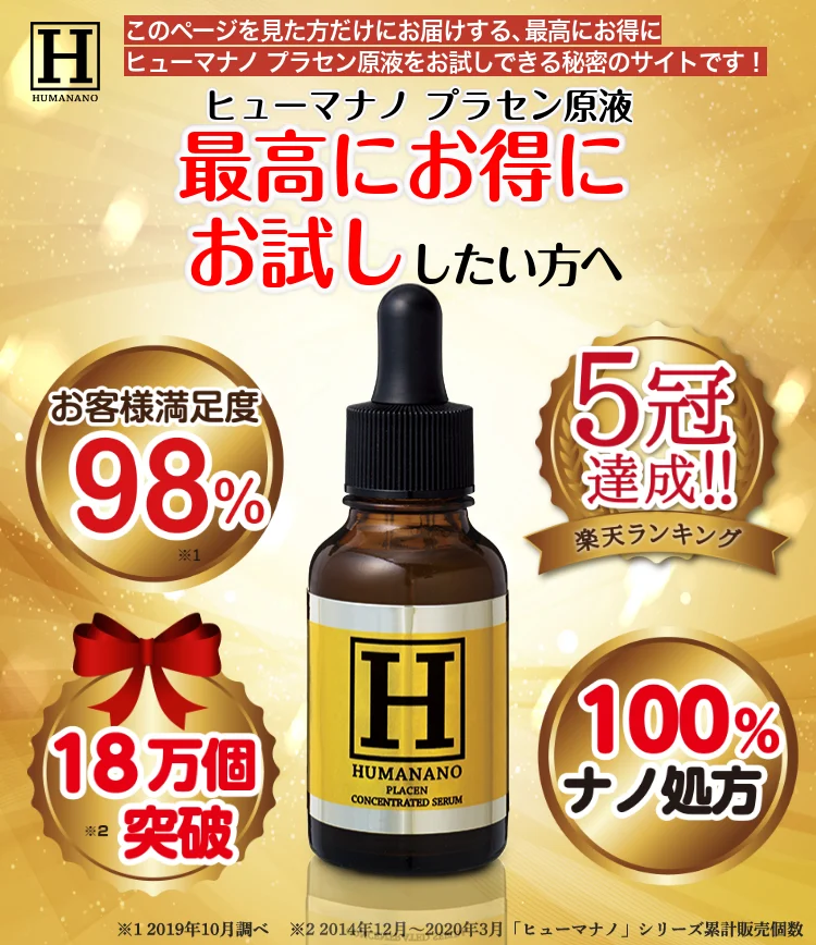 ヒューマナノプラセン原液は、日本初のバイオ合成ヒト型プラセンタを採用した美容原液です。