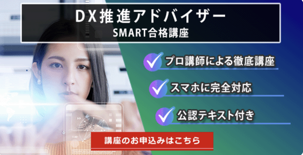 SMART合格講座【DX推進アドバイザー】は、DX推進アドバイザー認定試験に特化したオンライン対策講座です。